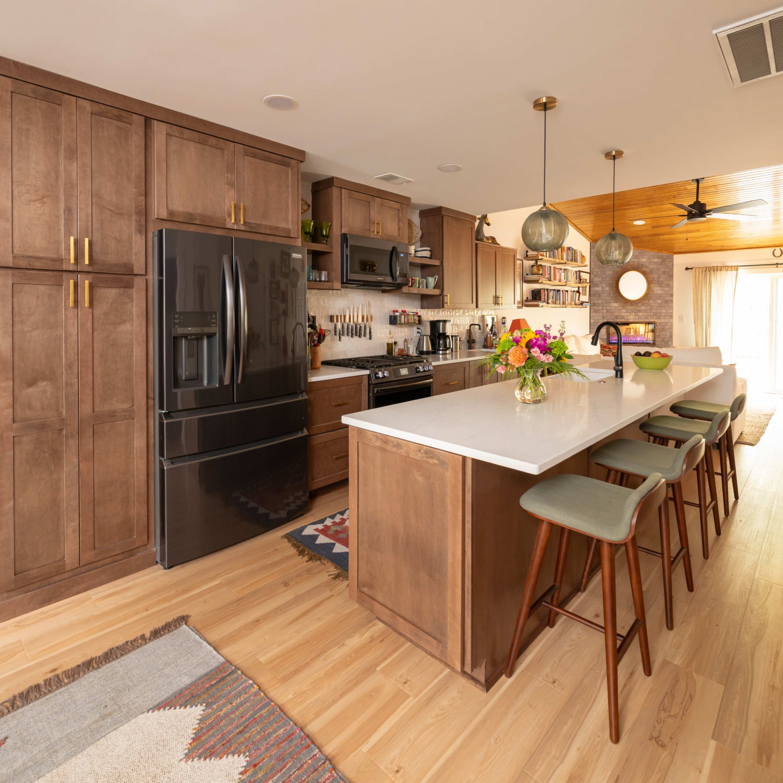 “Mary and Michael were great to work with. Mary’s input on lights, fan, fixtures, back splash and countertops were so helpful and very much appreciated, as well as Michael’s revisions we asked for. The only issue was the length of time we had to wait on the countertops, which was out of their control. In the end, the countertops were installed. They are beautiful and we are thoroughly enjoying our new kitchen. Thank you Mary, Michael and Nick (contractor) for our new beautiful kitchen/living room!”