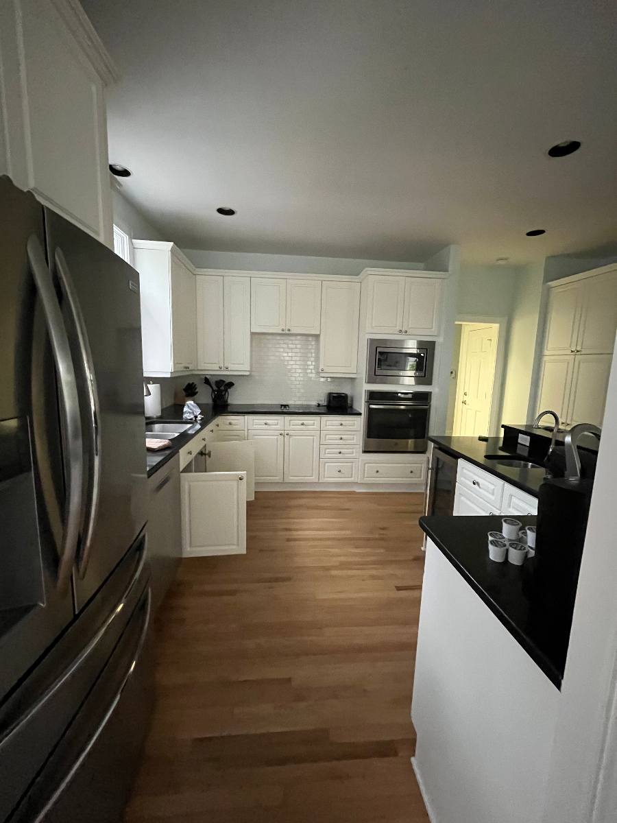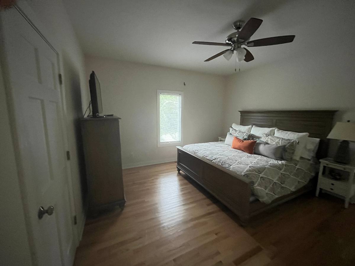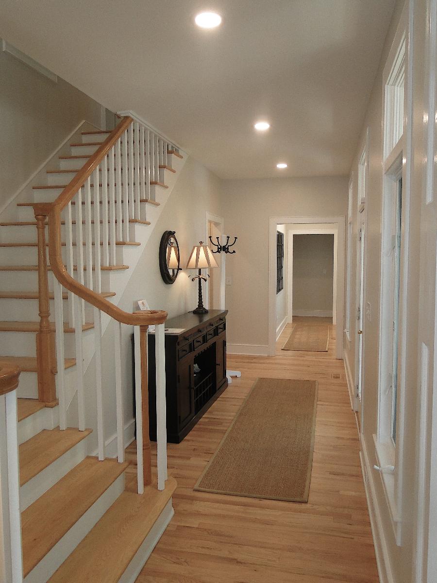 Throughout both floors, curated artwork and updated paint selections replaced dated décor with a fresh, cohesive palette. The hall bathroom was redesigned from the ground up by removing a constricting hallway and small shower to make room for a larger tiled shower with a custom glass door, along with a new vanity, flooring, lighting, and fixtures—resulting in a spa-like retreat.