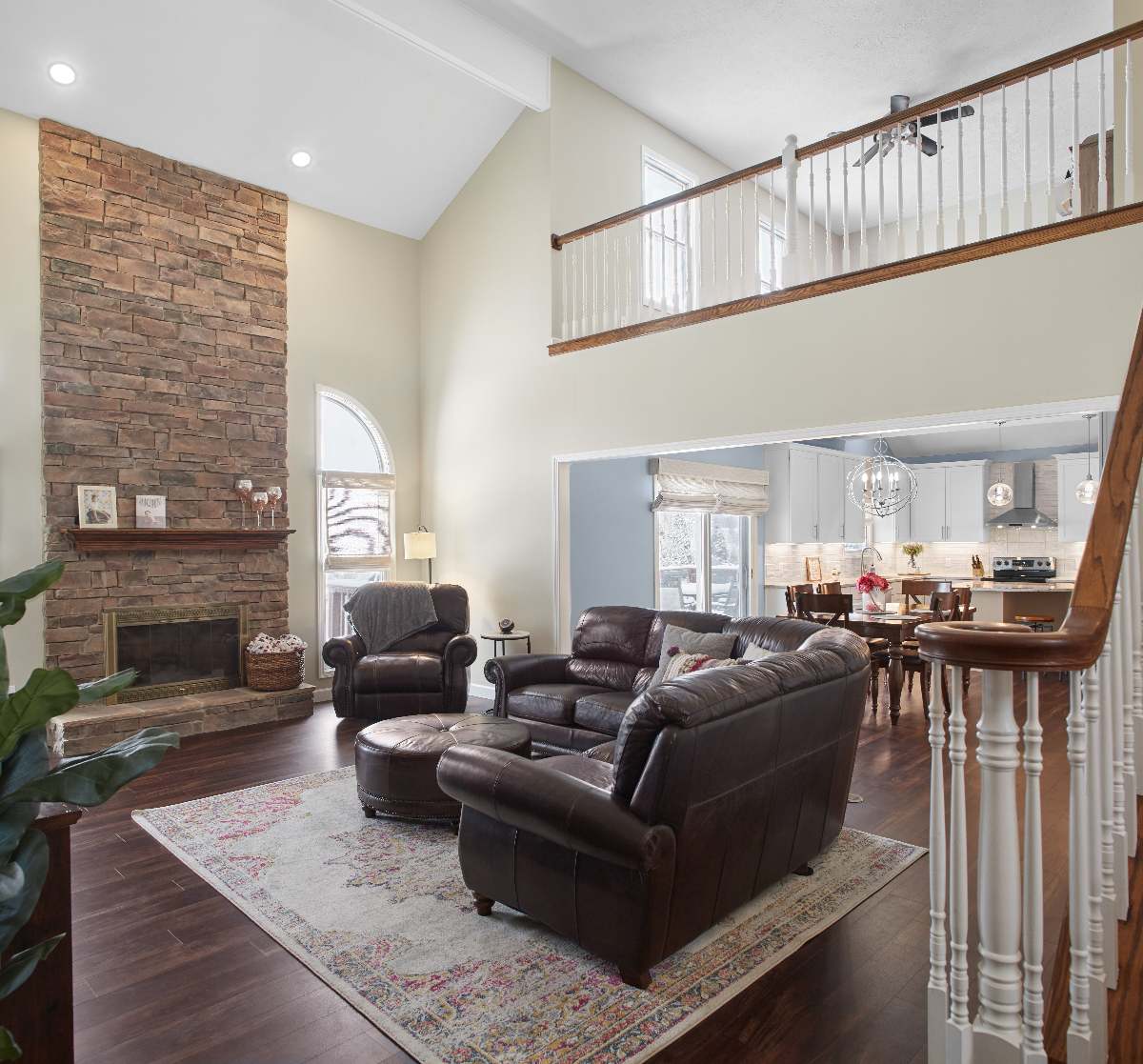 • First-floor finish updates including refreshed paint, new flooring, and updated stairs and railings for a unified look