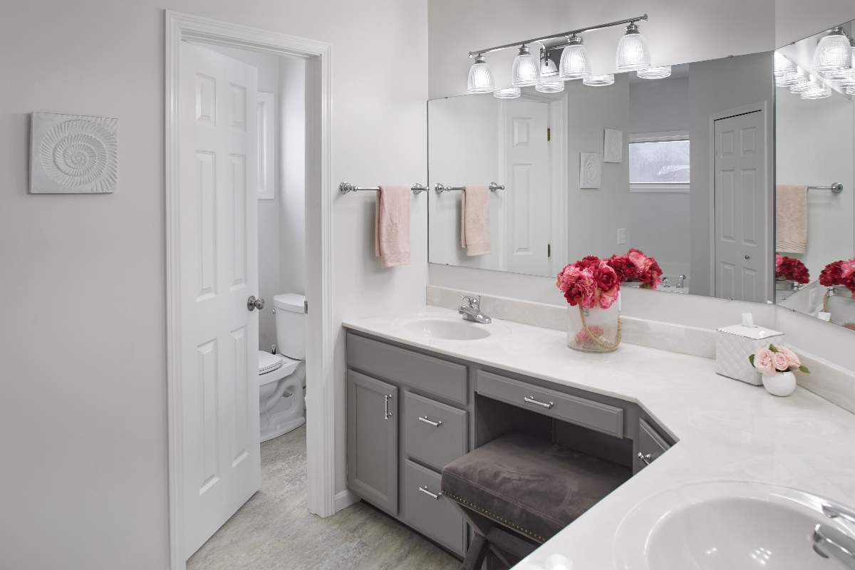 • Updated powder room with refreshed paint, thoughtfully selected plumbing and lighting fixtures, and finishing accessories that elevate the everyday experience